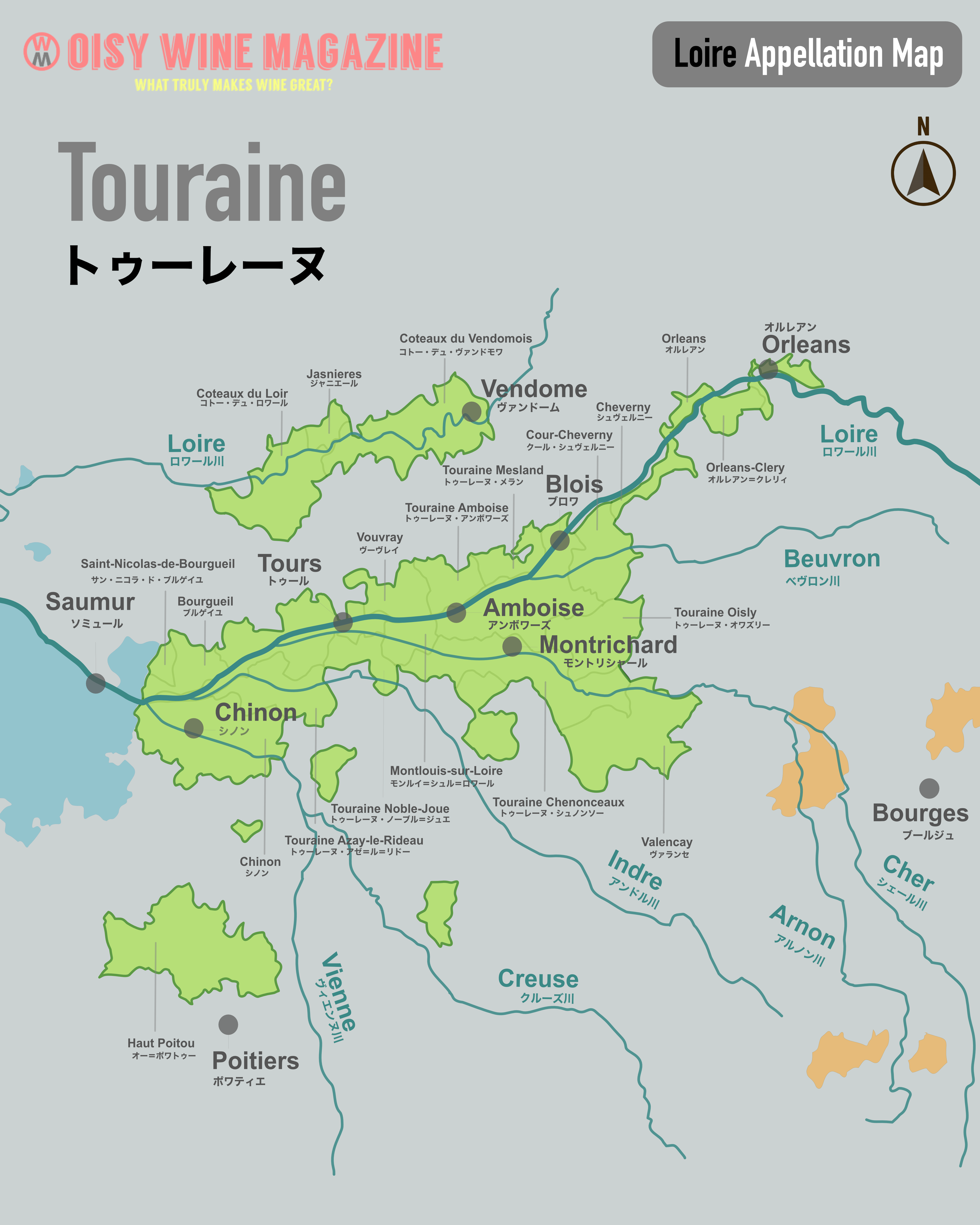 多くの支流がロワール川に合流する地点なので、川のどちら側に位置するかで日照なども変わり、土壌の性質も変わるので、トゥーレーヌのワインと一口に言っても、トゥーレーヌのどこなのか、で結構キャラクターが変わりそうです。